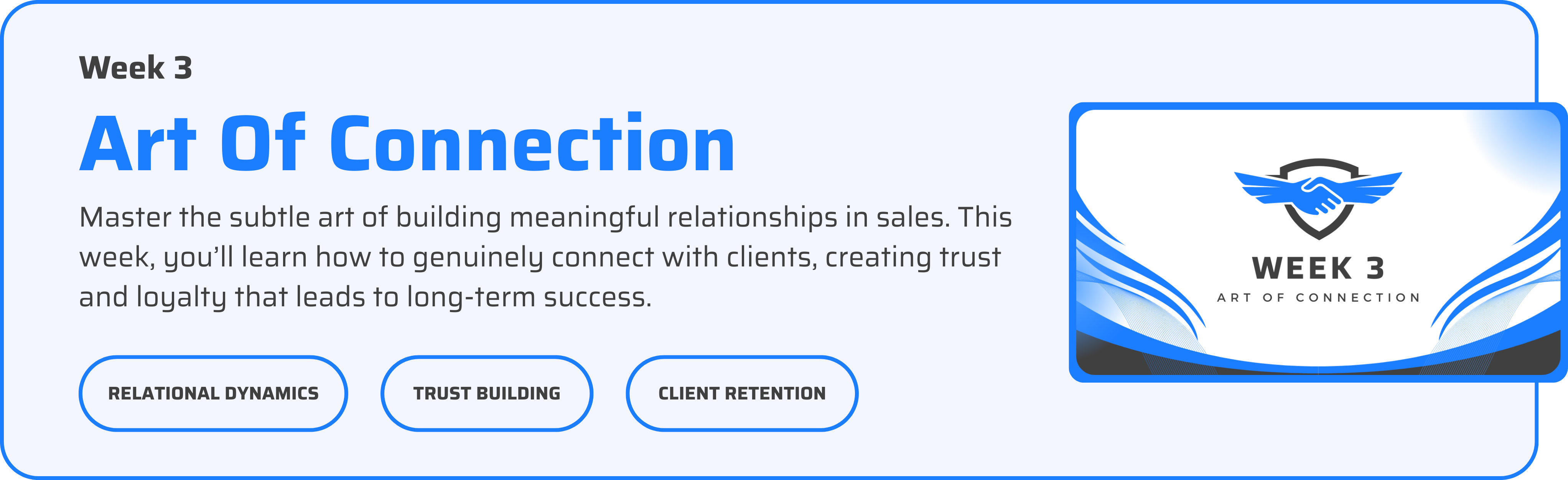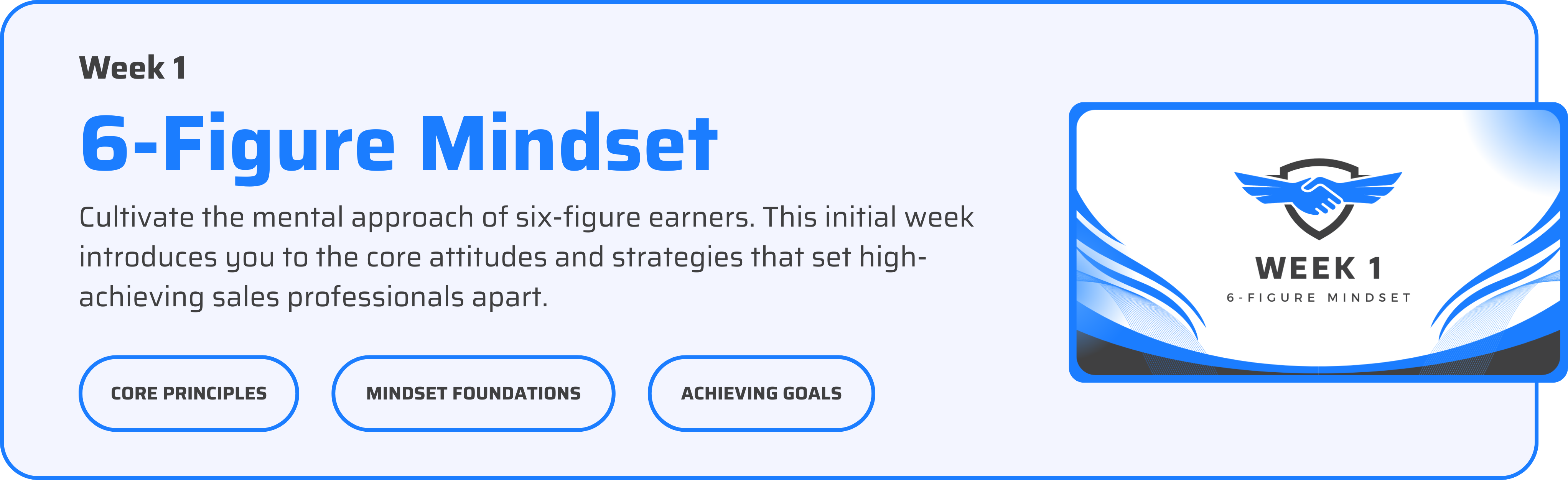 If you're looking to improve your sales skills and increase your life-long earning potential, there is no better or more complete sales training program. Our program is designed for individuals who are motivated, committed, and willing to put in the effort to succeed. If you do the work, you will get the results.