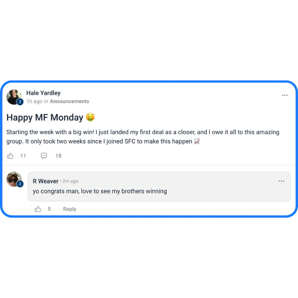 Yes, we offer ongoing support and coaching to help you achieve your sales goals. Our program includes access to a community of successful sales professionals (including many students who have already done what you're trying to do) who are available to provide training, guidance and support as you progress through the program.